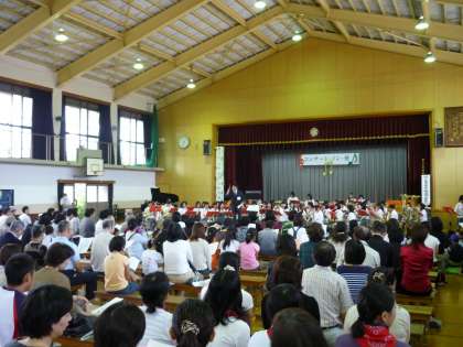 本校吹奏楽部が葵小学校体育館にて行われた「コンサートin葵」に参加しました。葵小学校で毎年実施されているコンサートに本校吹奏楽部も参加しています。今年は「京都市立下鴨中学校中学校区コミュニティプラザ事業」も共催ということで葵小学校区だけでなく,松ヶ崎小学校区,下鴨小学校区,下鴨中学校の保護者などにも呼びかけて実施されました。下鴨中学校吹奏楽部は「Everything」,「Secret Code」,「 世界にひとつだけの花」,「そばかす」などの演奏をしました。本校以外には葵小学校合唱部・琴部,葵小学校教職員,PTAコーラス,そして京都府立大学ギターマンドリンクラブなどの演奏がありました。演奏中に自然に拍手が起こったり,観客の方々も一体となった演奏会になりました。