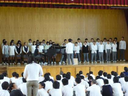 1年生は体育館で合唱コンクールの練習を行いました。広い体育館の中で,歌声をきれいに響かすことはまだまだ不十分ですが,他のクラスの発表を聴いたりしてこれからの練習の目標ができたようです。