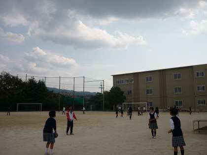 本日登校しているのは1組と2年2,3,4,6組の生徒だけです。全校生徒の3分の1以下です。昼休みのグランドの様子です。閑散としています。もちろん授業時間中はがんばって学習に励んでいます。