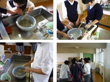 1組の家庭科の授業の様子です。豚汁作りに備えて,今日はごぼうのささがきをしました。泥のついたごぼうを水洗いし,包丁の背で皮を削り取り,きれいになったごぼうをささがきにしていきました。3つのグループに分かれて,先生に教えてもらいながらの挑戦でしたが,それぞれ削っていくごぼうのとがった形に特徴も出ていました。これから文化祭があるので,豚汁を作るのはまだまだ先になりますが,それまでは冷凍しておくそうです。