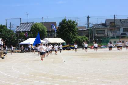 堂々と団長を先頭に色別入場行進!
