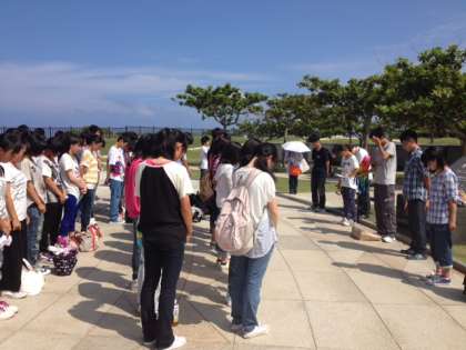 平和セレモニー:平和の願って,千羽鶴・・黙祷。