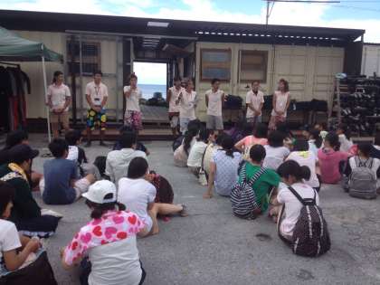 シュノーケリング開講式。日差しが強くて絶好の海日より