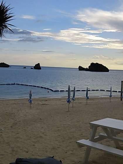 ホテルリゾネックス名護到着。海に面したきれいなホテルです。