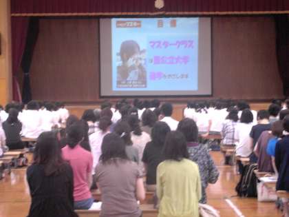 高校の学習様子や課外活動の内容など聞かせていただき,その後,進路主事より説明がありました。