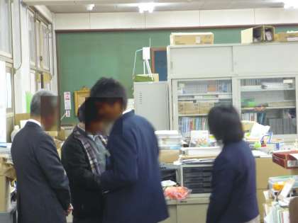 旅行代理店にチャレンジ体験でお世話になっている生徒2名が業者の方と一緒に本校の職員室を訪問してくれました。名札をつけ,自作の名刺を出しての挨拶をしてくれました。
