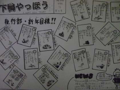 生徒会紙「下鴨やっほう」が発行され,今年度の生徒会執行部の新年の目標が掲載されています。執行部17名の決意がこめられています。