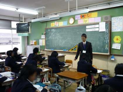 本日6時間目に2年2組の数学の授業で研究授業を実施しました。他校からも若い先生方が参観されました。内容は直角三角形の合同条件を使った証明でした。生徒も普段と変わらず,真面目な態度で授業に参加できていたようです。