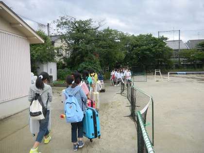 ※体育館を出るときには、雨も小降りになり いよい出発です。