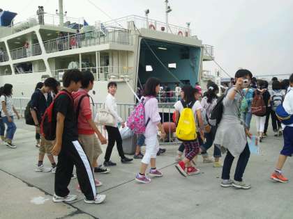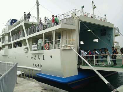 いよいよ伊江島へ フェリーに乗り込んでいます。