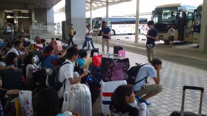 解団式を終わり、バスに乗り込みました。約1時間で到着の予定です。
