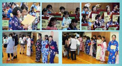 写真の通り,部員はみな浴衣姿!和装教室のおかげなのか,多くの生徒が助けなしに自分で着替えたとのこと。最後は整列して,皆様を見送ってくれました。
