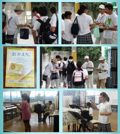 今日は午後から,法務省が主唱する”社会を明るくする運動”の一環として,本校校区にいらっしゃる保護司の皆様においでいただき,啓発のためのパンフレットを渡しながら,声掛けをしてくださいました。7年間にわたって続けられているそうですが,はにかみながらシャープペンシルを受け取る姿をほほえましく見ておりました。