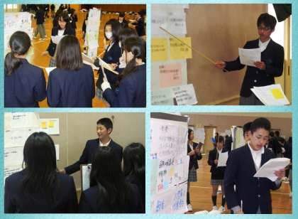 今日もまた粉雪の舞う寒い一日となりましたが,冷え込む体育館の中,予定通り2年生のポスター発表会が実施されました。