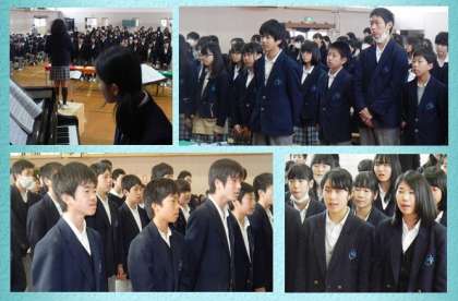 「笑顔来た門倶楽部」の皆様にお世話いただいている北門同様,殺風景だった正門付近にも環境委員会の生徒の手で,花の苗が植えられました。チューリップの葉も,日増しに大きくなってきました。そして,今日は1・2年生合同での送る会練習。それぞれの学年が趣向を凝らして,3年生にメッセージを送ります。思いが伝わって卒業生を泣かせたいです!
