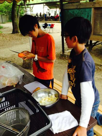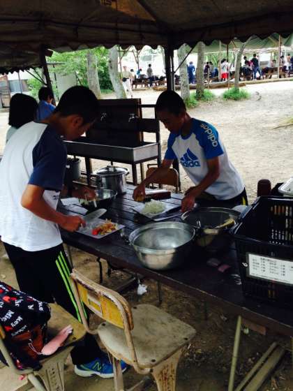 調理開始です。班で協力してどこよりもおいしい料理ができますように・・・みんな頑張っています。