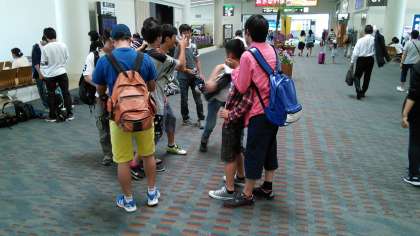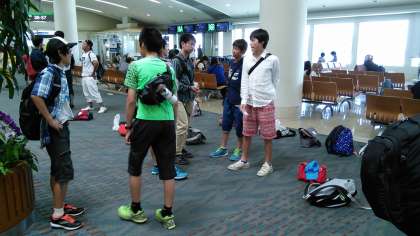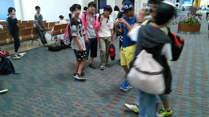 那覇空港での様子です。3年生諸君も気分高揚しています。沖縄での生活に期待ワクワクですね。