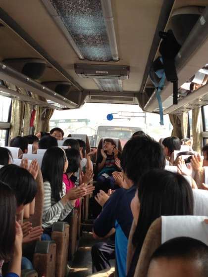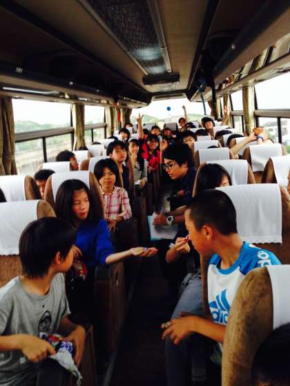1年生は、只今帰路の途を辿っているところです。クラスの親睦を十分図れたのかバス内でもとても楽しそうに盛り上がっています。中学校に入学して早いもので、2ヶ月ですが既に体育大会、校外学習と大きな行事を通して中学生としての意識を高められたと思います。活発で仲の良い学年が益々、素晴らしい集団になっていくのが楽しみです。16時前には校区4ヶ所でそれぞれ解散となります。