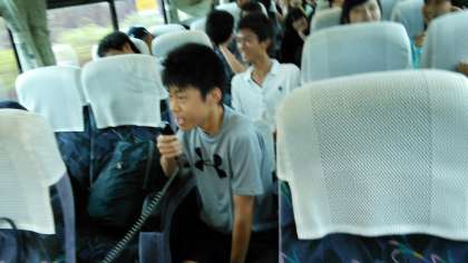 先ほどの『おやすみタイム』は撤回です。やっとクラスで活動できるチャンスを外すはずはありません!!マイク片手に熱唱する男子生徒に大盛り上がりのみんなです。ここでクラスの親睦と和を結んで、益々良いクラス作りに励んで下さいね!