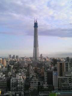 左:ホテルの窓から建設中の東京スカイタワーが見えました