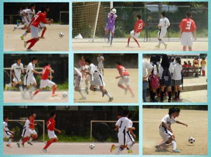 サッカー部は,桂中学校で強豪 修学院中と対戦しました。緊張した様子は見られなかったのですが,開始早々に先制点を許してしまいました。それでも気落ちせずに粘り強く食らいついていきます。オフサイドながら,ゴールネットを揺らすシーンも。