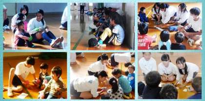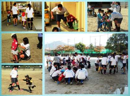 「もう一回やりたーい」風は晩秋のものでしたが,日なたで走り回ると汗ばむほどです。園児の皆さんにも,楽しんでもらえたようです。3年生を遊んでくれて,どうもありがとう!