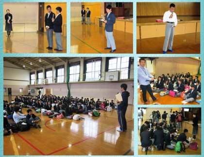 来週月曜日からのチャレンジ体験に向けて激励会が行われました。生徒の司会のもと,決意表明,諸注意,校長先生の激励の言葉のあと,事業所ごとに分かれて担当教員と最後の打ち合わせをしました。その後,最終の打合せ,挨拶のために各事業所へと向かっていきました。実のある4日間になることを祈っています。