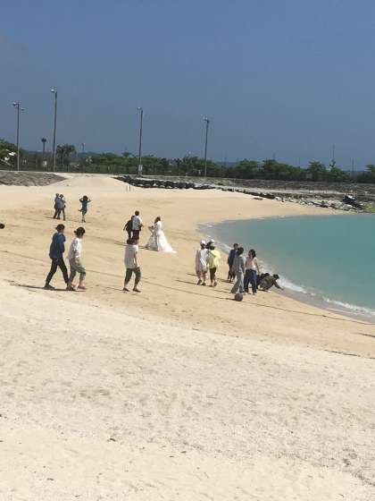 民家からサザンビーチホテルに向けてみんなが集合し始めています。