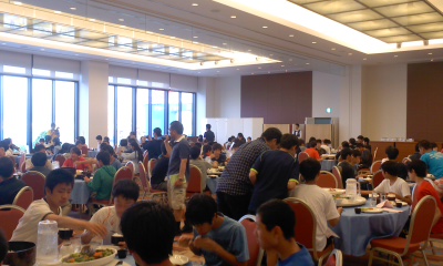 朝食風景です。バイキングで部屋ごとにいただきます。