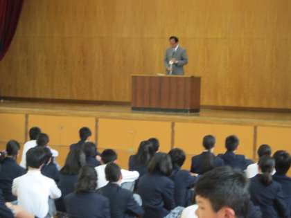 本日4限,創立記念式が行われました。学校長より創立の由来や創立当初の学校の様子などのお話がありました。