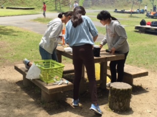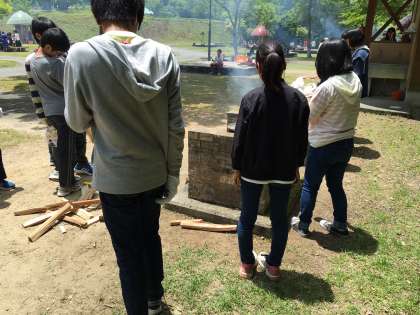みんな青空の下,協力し合っておいしいごはんを作りました。