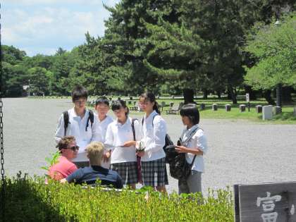 今日のプログラムは,外国の方へ英語のインタビューをするミッションもあります。下鴨中生としての英語力を発揮できましたか?