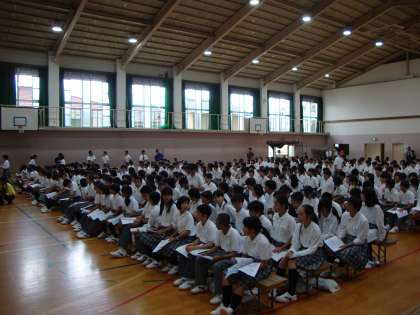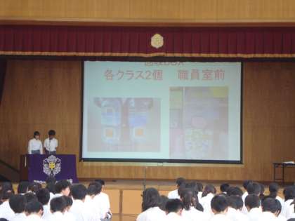 全校生徒の聞く姿勢も素晴らしい態度でした。発言者や各学級委員の明瞭かつ明確な議決内容。