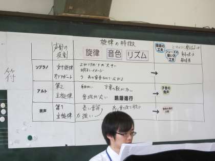 今日は、音楽科の教育実習の先生のお二人が、この実習の成果を発表する研究授業を行いました。