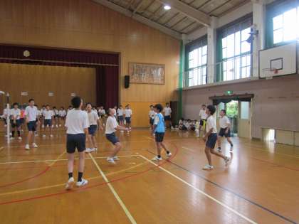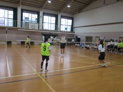 本日1,2限に3年生の球技大会が行われました。晴天ならグランドでラケットベースを予定していたのですが,あいにくの雨で,体育館でバレーボールを行いました。男女別で各クラス2試合ずつ行いました。結果はともかくクラスが団結し,楽しく試合ができました。