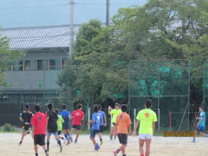 明日の対七条戦のために,朝早くから練習するラグビー部の様子です。毎日の練習に加えて,朝のわずかなひとときですが,努力を積み重ねています。