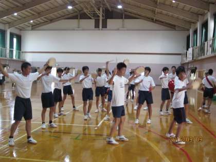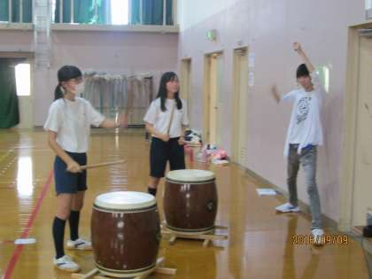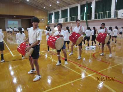 こちらは3年生。先週から体育館で大きなとても良い音色の太鼓の音が聞こえてきていたので,3年生の先生にお願いして,今日は写真を撮影していただきました。