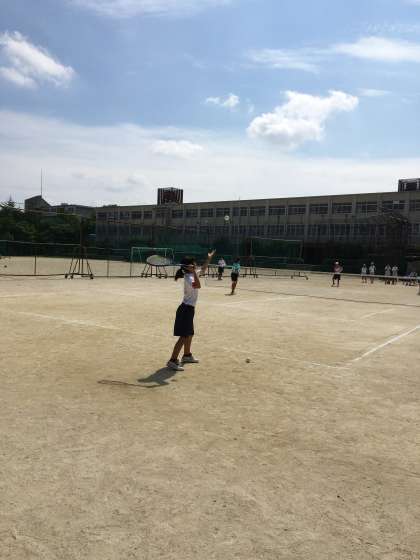 真夏の暑い日ざしの中で,夏休み中もラケットを手に頑張っていた女子テニス部。残念ながら予選敗退とはなりましたが,これからますます力をつけて伝統ある女子テニス部をさらに飛躍させていって下さい。
