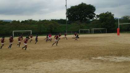 相手がボールを手にしたとたん,激しくタックルを試み,ボールを繋げてトライをする戦法は観ていて楽しく,ラグビーのおもしろさも会得できました。また,ラグビー部全員がこの試合に臨んでいる姿が良くわかる動きが随所に見られ,頼もしく思えました。
