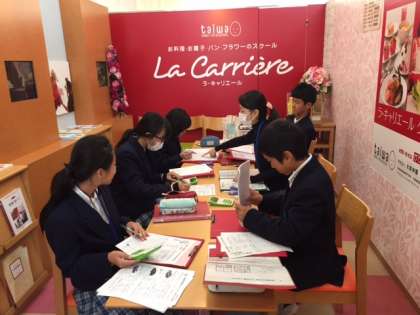学校での事前学習を終えた生徒達は,税金や保険をはじめ食費・光熱費などの生活に必要な費用の試算,商品の購入・契約などを実際に体験しました。これは,情報を適切に活用する力や自らの生き方に繋がる生活設計能力を育成するためのキャリア教育です。