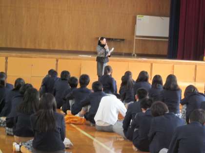 多くの行事をクラス一丸となってやり遂げてきただけに,どのクラスの発表も「団結が深まった」というような意見が多かったです。その後,進路や卒業式に向けての決意を発表したあと,各先生から,進路について,生活面についてのお話しがありました。