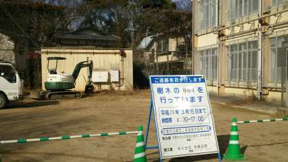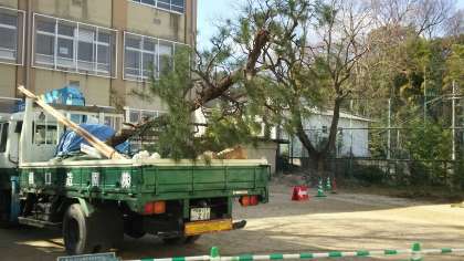 二条城東大手門前付近の工事にちなんで,本校中庭付近に松の木が植栽されることになりました。