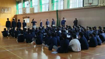 こちらは1年生。6限,体育館での3年生に向けてのメッセージ練習及びメッセージを元気な明るい声で表現していました。