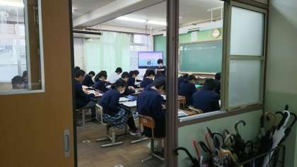 こちらは,本館で学習する3年生。英語の授業2クラスと社会の授業です。