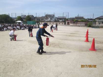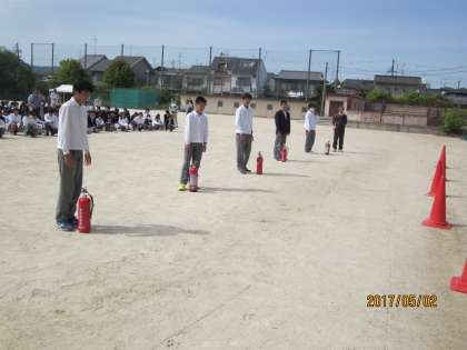本日,6限に全校体制の避難訓練が実施されました。左京消防署より御指導いただき,素早くグランドまで全員が避難できました。お褒めの言葉もいただきました。