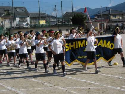 入場行進は吹奏楽部のマーチング演奏の先導で,生徒会役員の持つ校旗に続いて,