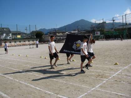 3年生・2年生・1年生の順に行われました。各クラスで製作した学級旗とプラカードに続いて女子・男子の順に入場しました。