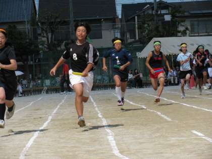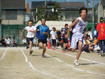 男子の部には先生チームも参加し,ALTの先生も快足を見せてくれました。