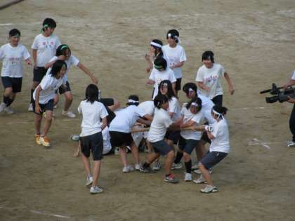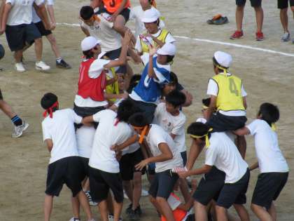 男女別で,女子は棒引き,男子は騎馬戦を行いました。