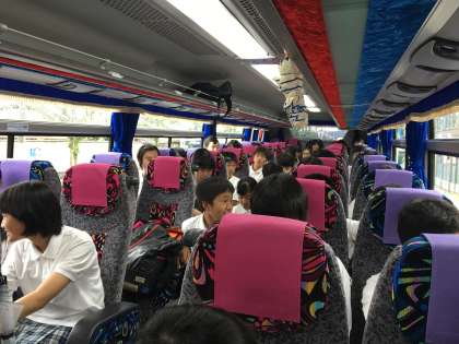 2年生も神戸に向かってバスで出発!ワクワク感あふれるバス車内です。